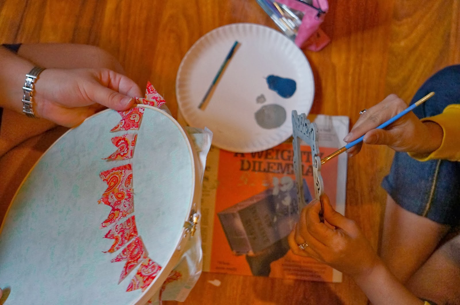 because i was late getting back to the cabin, i missed getting a pic of the food! also- i had Veronica teach a quick, fabric rosette lesson to anyone interested, while they snacked and waited for me. #leaderfail